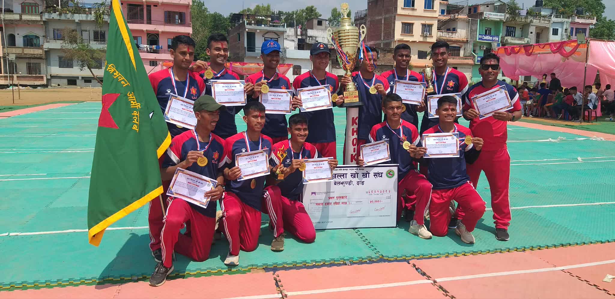 जिल्ला खो-खो संघ दाङले जिल्लामा पहिलो पटक आयोजना गरेको प्रथम खुला पुरूष प्रतियोगिता अन्तर्गत आइतबार बिहान भएको फाइनल खेलमा नेपाल आर्मी क्लबले लुम्बिनी प्रदेशलाई २०–१६ को अन्तरले पछाडि पार्दै उपाधि जितेको हो।