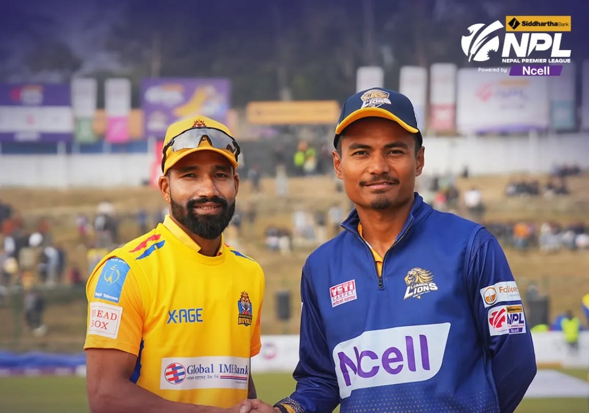 सिद्धार्थ बैंक नेपाल प्रिमियर लिग (एनपिएल) मा लुम्बिनी लायन्सले सुदुरपश्चिम रोयल्सविरूद्ध टस जितेको छ।
