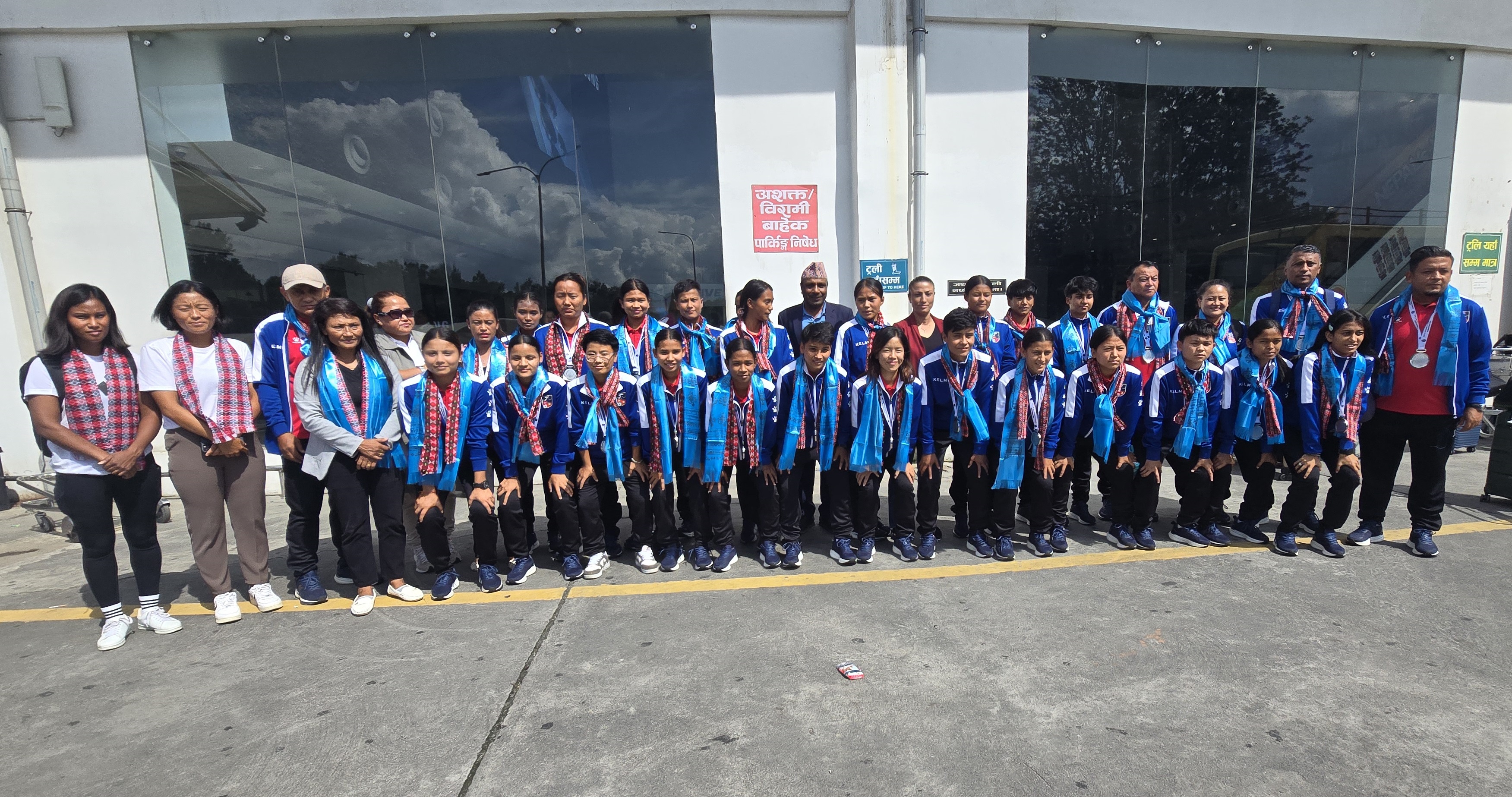 साफ यू-२० महिला च्याम्पियनसिपमा उपविजेता बनेको नेपाली टोली स्वदेश फर्किएको छ।