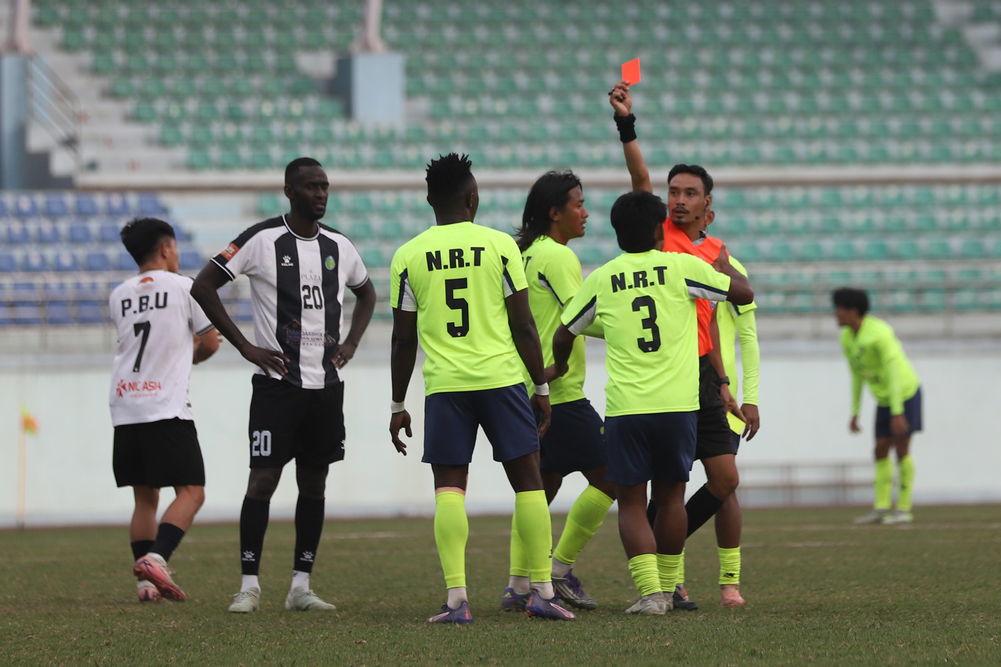 खेल सकिन चार मिनेट बाँकी छदा एनआरटी दश खेलाडीमा सीमित बन्यो। उसका ओमोलाजा करिम दोस्रो पहेँलो कार्ड पाउँदै मैदान बाहिरिन बाध्य भयो।