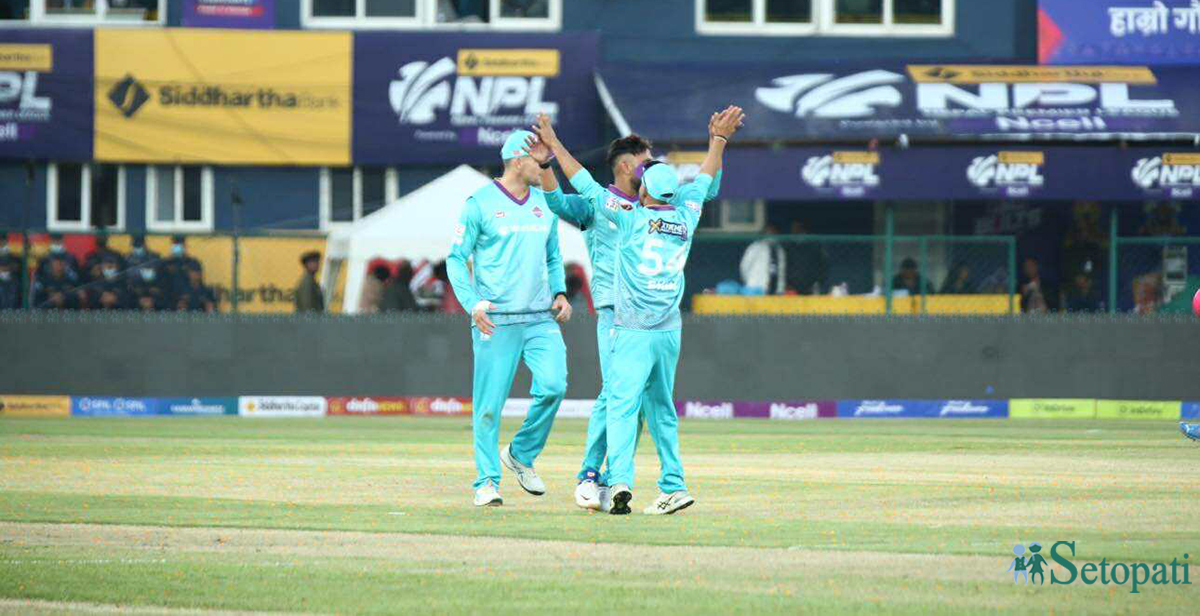 पाँचौं ओभरमा काठमाडौंका लागि मिलिन्द कुमारले दुई विकेट लिँदा एक रन मात्र खर्चिएका थिए।