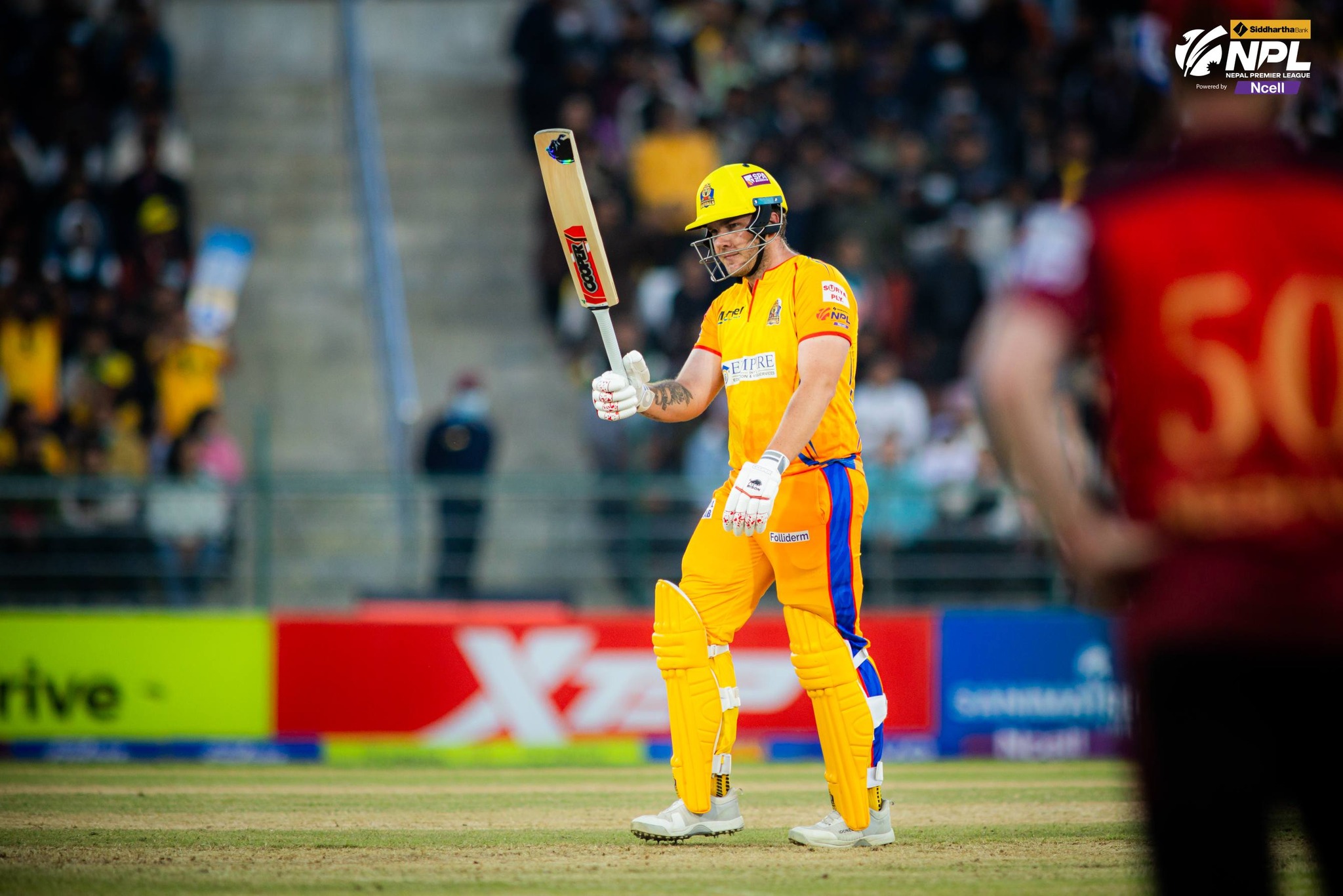 काठमाडौंविरूद्धको अघिल्लो खेलमा उत्कृष्ट ब्याटिङ गरेका हर्मित सिंहले ४ रन मात्र जोड्न सके। यस्तै स्कट कुगेइलिने पनि ८ रनमा आउट भए। अन्तिम ओभरको पाँचौ बलमा आरिफ शेख शून्यमा एलबिडब्लूको धरापमा परे।