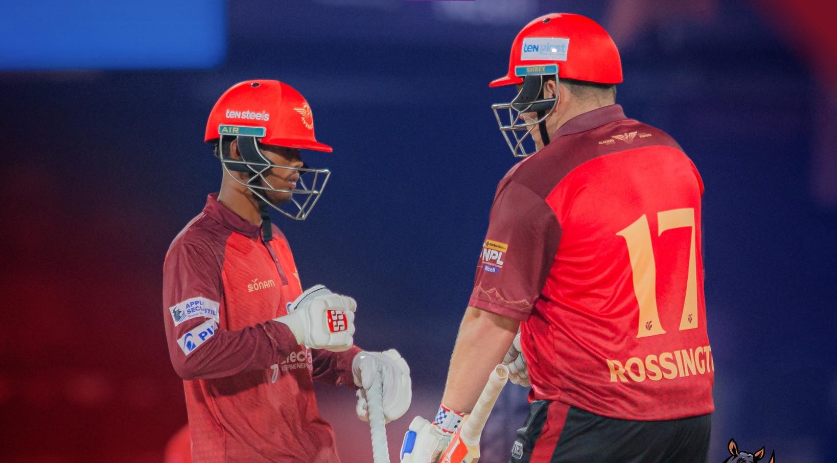 सिद्धार्थ बैंक नेपाल प्रिमियर लिग (एनपिएल)मा शनिबारको दोस्रो खेलमा पोखरा एभेन्जर्सले चितवन राइनोजमाथि ८ विकेटको जित निकालेको छ।