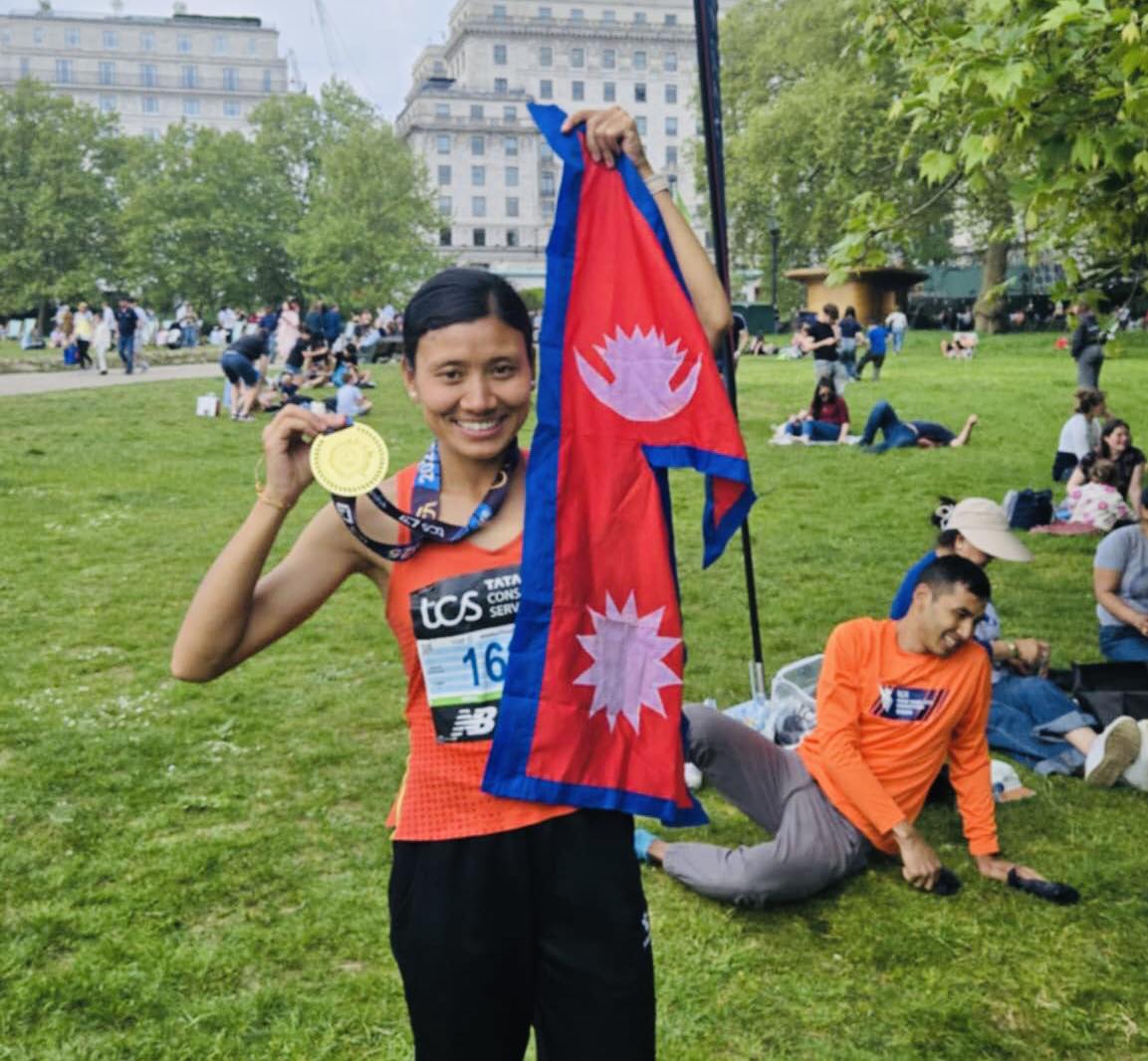 आइतबार लन्डन म्याराथन दौडिएकी श्रेष्ठले २:४२:५० घण्टामा निर्धारित दूरा पार गर्दै नयाँ राष्ट्रिय कीर्तिमान बनाएकी हुन्।