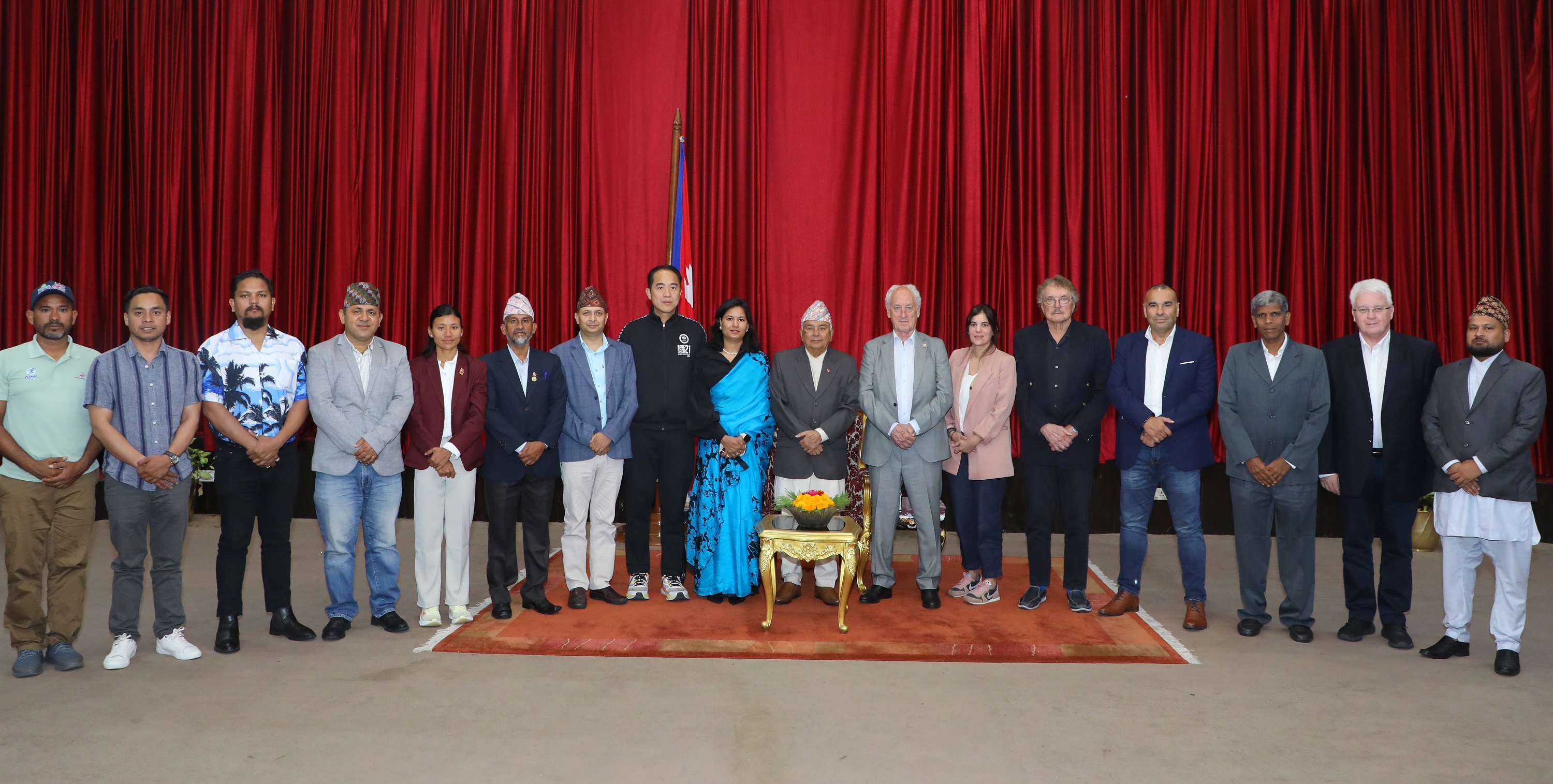 राष्ट्रपति रामचन्द्र पौडेलले नेपाल भ्रमणमा रहेका विश्व म्याराथनको साझा संस्था एसोसिएसन अफ इन्टरनेशनल म्याराथन डिस्टेन्स रेस (एम्स)का अध्यक्ष पाको बोराओलाई एम्सको बोर्ड बैठक नेपालमा राखेकोमा धन्यवाद दिएका छन्।