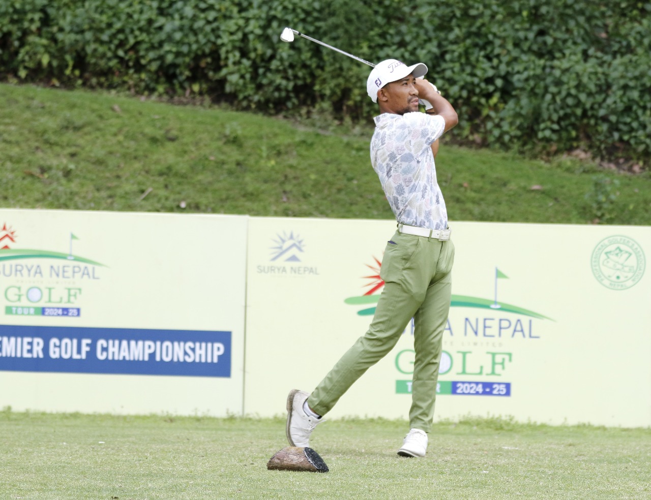 सूर्य नेपाल गल्फ टुर २०२४–२५ को अन्तिम तथा सर्वाधिक नगद पुरस्कार राशीको प्रतियोगिता सूर्य नेपाल प्रिमियर गल्फ च्याम्पियनसिपको दोस्रो दिन एमेच्योर राहुल विश्वकर्मा र प्रो सुवास तामाङ संयुक्तरुपमा शीर्षस्थानमा रहेका छन्।