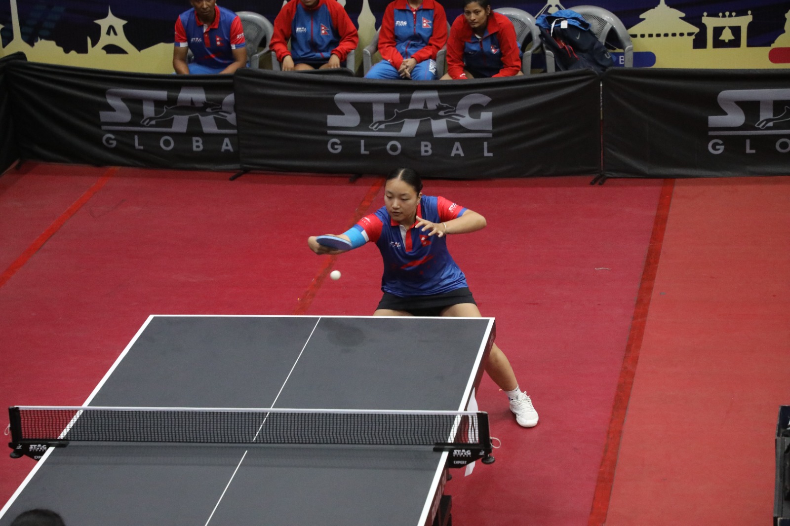 अखिल नेपाल टेबलटेनिस संघको आयोजनामा भइरहेको प्रतियोगिताको महिलामा पनि ३ खेल खेलेको नेपालले २ मा जित र १ मा हार व्यर्होयो । माल्दिभ्स र बंगलादेशलाई ३–० ले पाखा लगाएको नेपाल श्रीलंकासंग २–३ ले चुक्यो । नेपाली टोलीको खेलाडीमा वियंका राई, इभाना थापा, नविता श्रेष्ठ र योङगी पौडेल रहेका छन् । पाँचै टिम सहभागी महिलमा पनि नेपालले बिहीबार भारतको सामना गर्ने छ ।