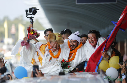 विश्व कीर्तिमान राखेर फर्किएका आरोहीहरूलाई विमानस्थलमा भव्य स्वागत (तस्बिरहरू)