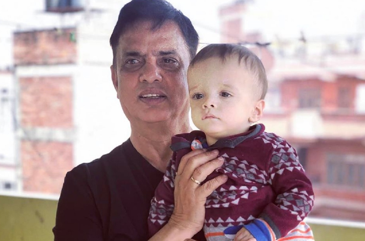 गत वर्ष आफ्ना नातिसँग हरिवंश। तस्बिर स्रोतः हरिवंश आचार्य