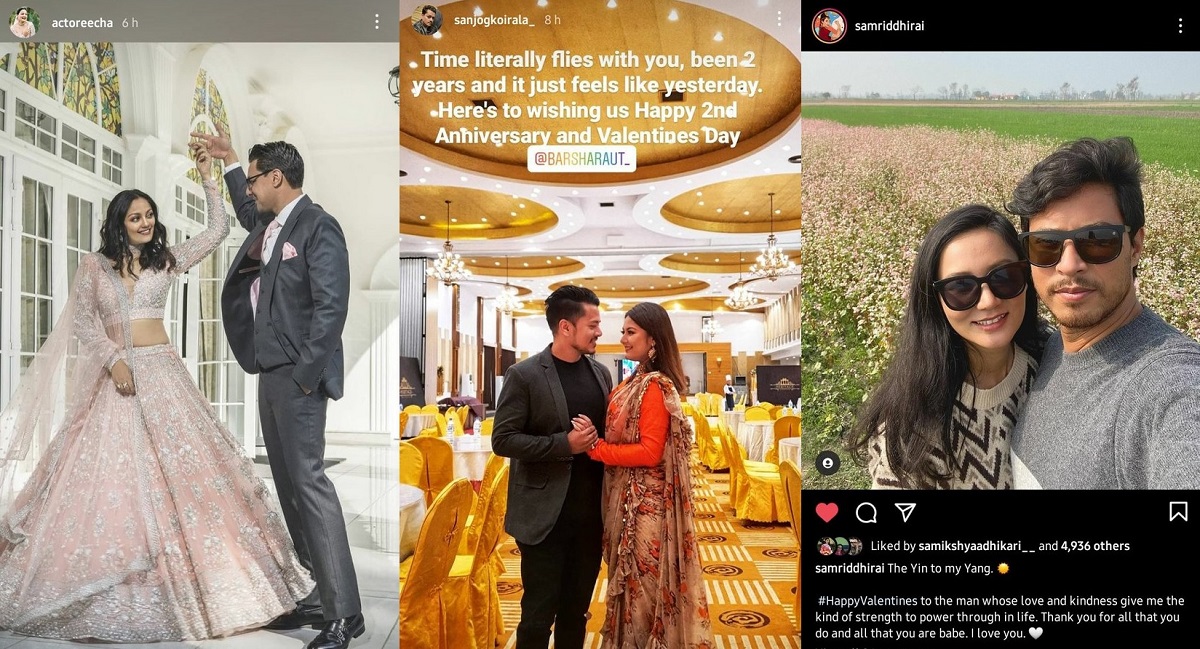 वैवाहिक एवम् प्रेम सम्बन्धमा बाँधिएका कलाकार, गायक-गायिकासम्मले आफ्नो प्रेमी-प्रेमिकासँगको फोटो सेयर गर्दै प्रेमिल शब्दमा उनीहरूको बयान गरेका छन्।