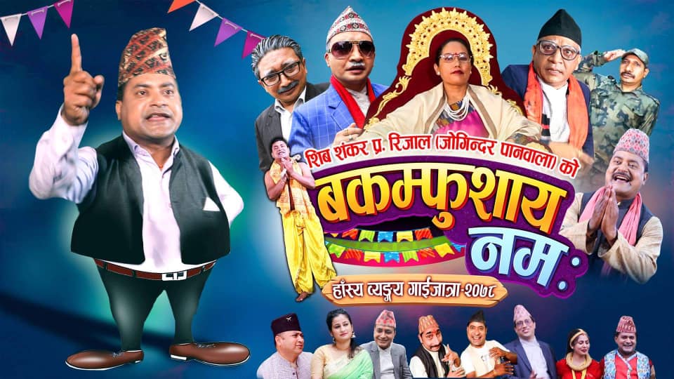 आगामी भदौ ७ गतेको गाईजात्रालाई लक्षित गरी हास्यकलाकार शिवशंकर रिजाल ‘जोगिन्दर’ले गाईजात्रे कमेडी ‘ओम बकम्फुसाय नमः’ सार्वजनिक गरेका छन्। उनको यो प्रहसन तथा प्यारोडीको भिडिओ युट्युब च्यानल मार्फत बुधबार साँझ सार्वजनिक गरिएको हो।