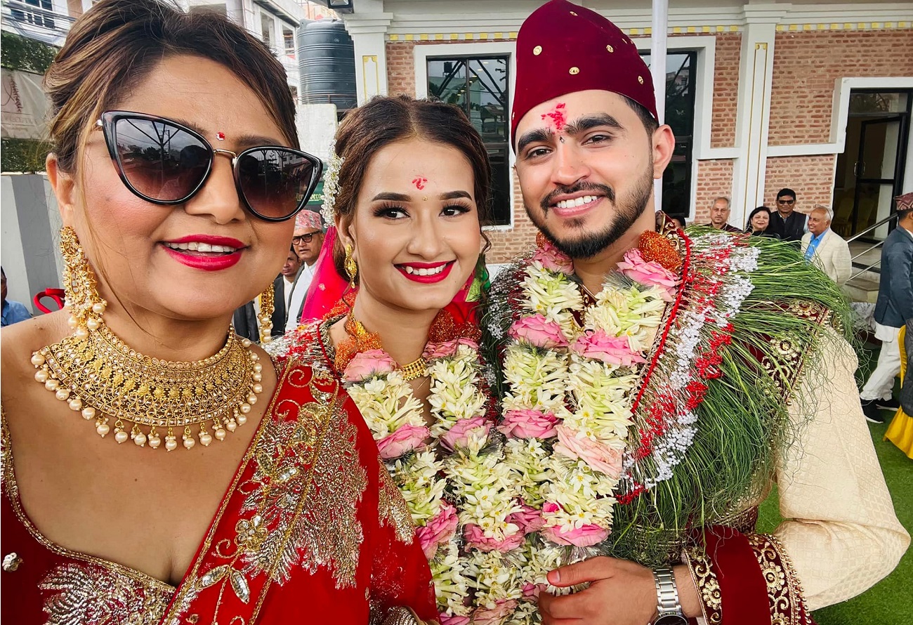 निर्देशक तथा अभिनेत्री दीपाश्री निरौलाले फेसबुकमा विवाहको तस्बिर सार्वजनिक गर्दै लेखेकी छन्, ‘छोरो राज र बुहारी सुनिशालाई दाम्पत्य जीवनको हार्दिक बधाई तथा शुभकामना!'