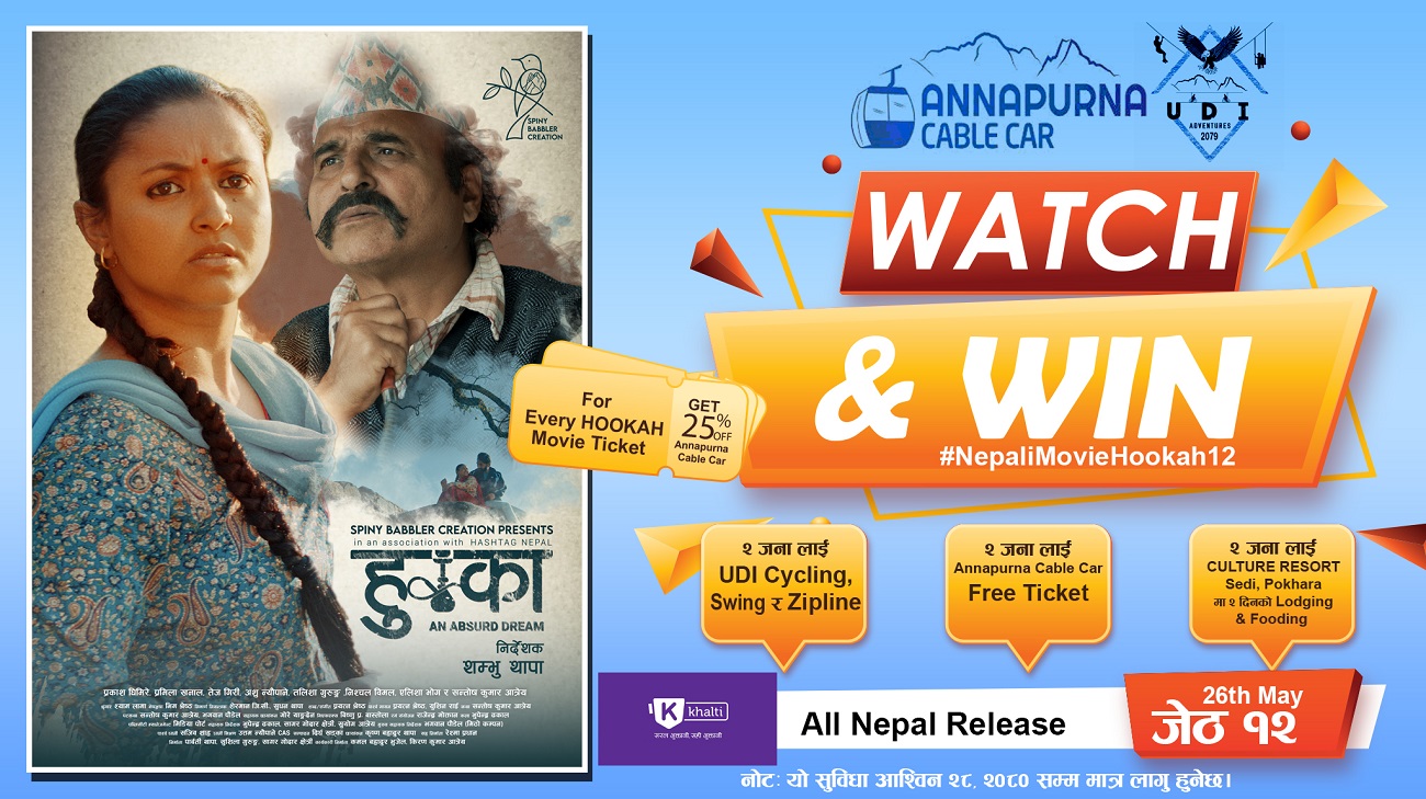 यही शुक्रबारबाट रिलिज हुने फिल्म 'हुक्का: एन एब्सर्ड ड्रिम' ले पोखरास्थित अन्नपूर्ण केबल कार र उडी एडभेन्चरसँग सहकार्य गर्दै दर्शकका लागि 'वाच एण्ड वीन' अफर ल्याएको छ। यो अफरमा खल्तीको डिजिटल टिकेटिङ सहकार्य छ।