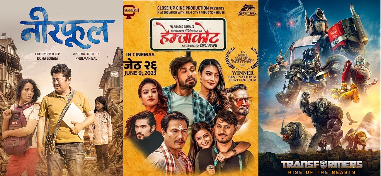 नेपाली फिल्मतर्फ 'नीरफूल', 'वेलकम टु हेम्जाकोट' र हलिउड फिल्म 'ट्रान्सफर्मरः राइज अफ द बिस्ट' प्रदर्शनमा आएका हुन्।