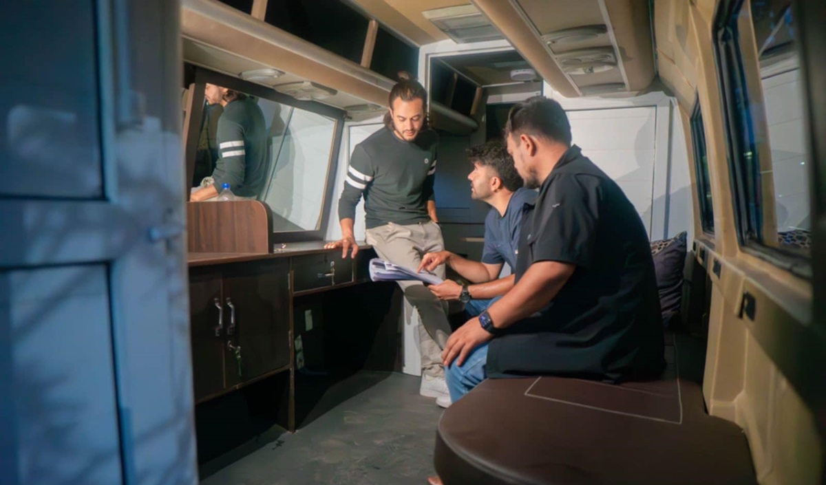 उनका अनुसार अहिले फिल्मका मुख्य अभिनेता प्रदीपले टेक भएको अवस्थामा बाहेक यही भ्यानमा रहेर तयारी गरिरहेका छन्।