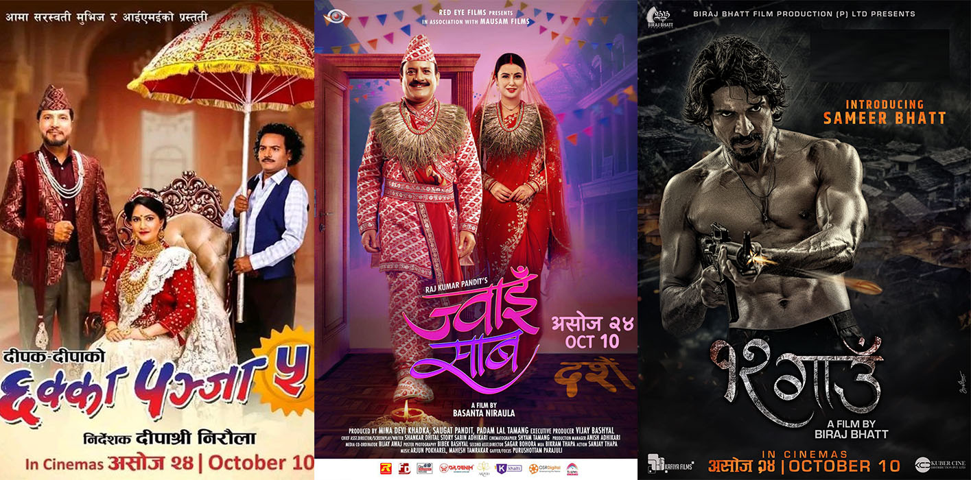 उक्त महिना एकैदिन तीन वटासम्म फिल्मको रिलिज घोषणा गरिएको छ। त्यसमा पनि दसैंको फूलपाति (असोज २४) गतेका फिल्मलाई बढी चासोका साथ हेरिएको छ।