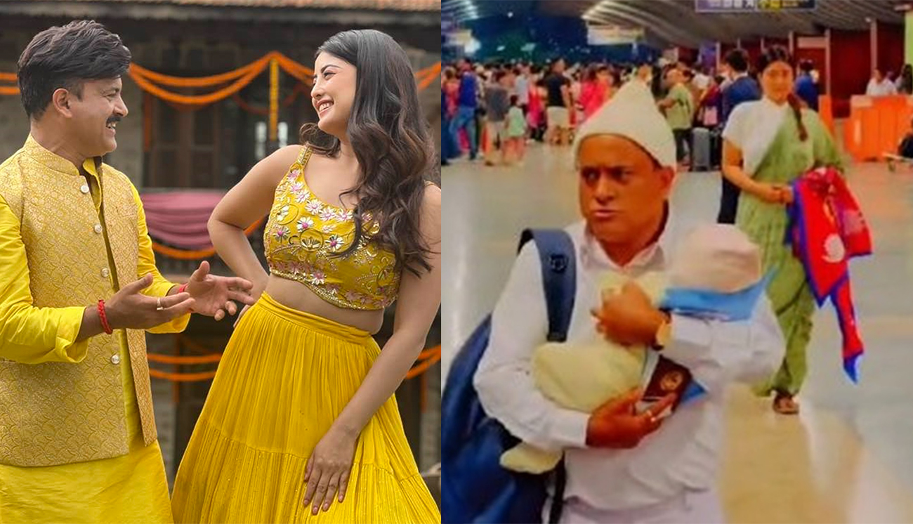 सार्वजनिक भिडिओमा फिल्मका प्रमुख कलाकार जितु नेपाल सेतो पहिरनमा हातमा बच्चा बोकेको अवस्थामा देखिएका छन्। उनले निलो ब्याग बोकेका छन्। हातमा पासपोर्ट पनि देखिएको छ।