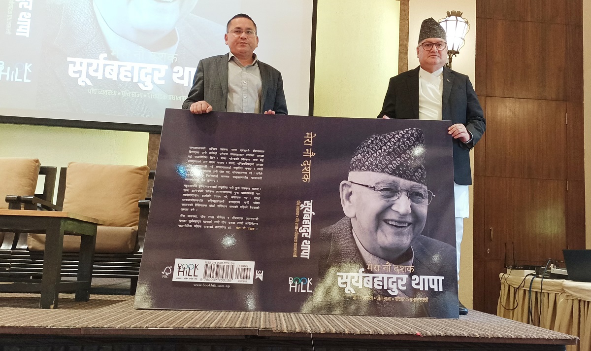 पूर्वप्रधानमन्त्री सूर्यबहादुर थापाको आत्मकथा 'मेरा नौ दशक : पाँच व्यवस्था, पाँच राजा र पाँचपटक प्रधानमन्त्री'को आवरण सार्वजनिक भएको छ। आज राजधानीमा आयोजित पत्रकार भेटघाट कार्यक्रममा सूर्यबहादुर थापाका सुपुत्र सुनीलबहादुर थापा र पुस्तकका सम्पादक हरिबहादुर थापाले पुस्तकको आवरण लोकार्पण गरेका हुन्। पुस्तकको आवरण सचिन यगोल श्रेष्ठ र उमेश काफ्लेले डिजाइन गरेका हुन्।