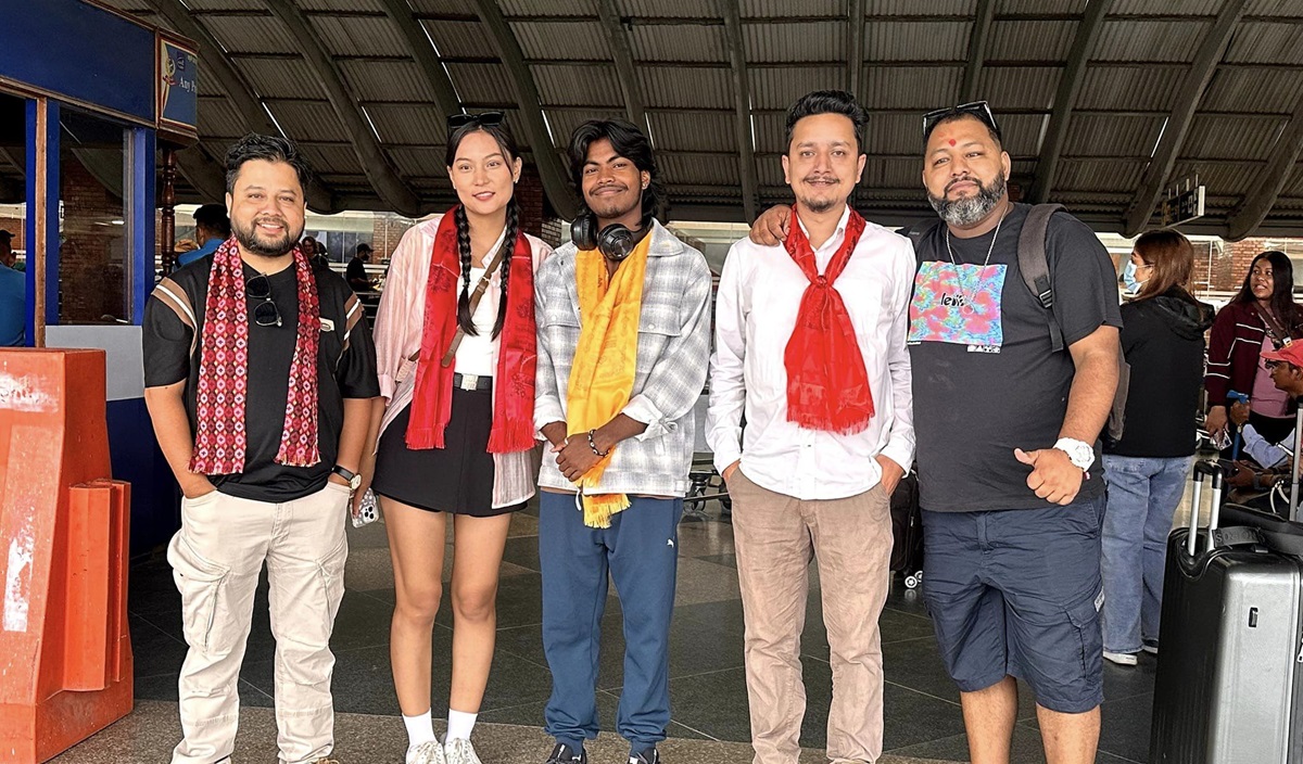 नेपाल आइडल सिजन ५ का विजेता करण परियार, फर्स्ट रनरअप सलोमी गुरूङ र सेकेन्ड रनरअप सचिन विश्वकर्मासहित स्ट्यान्ड अप कमेडियन सुमन कोइराला (दले दाइ) र साजन श्रेष्ठ शुक्रबार दुबई उडेका हुन्।