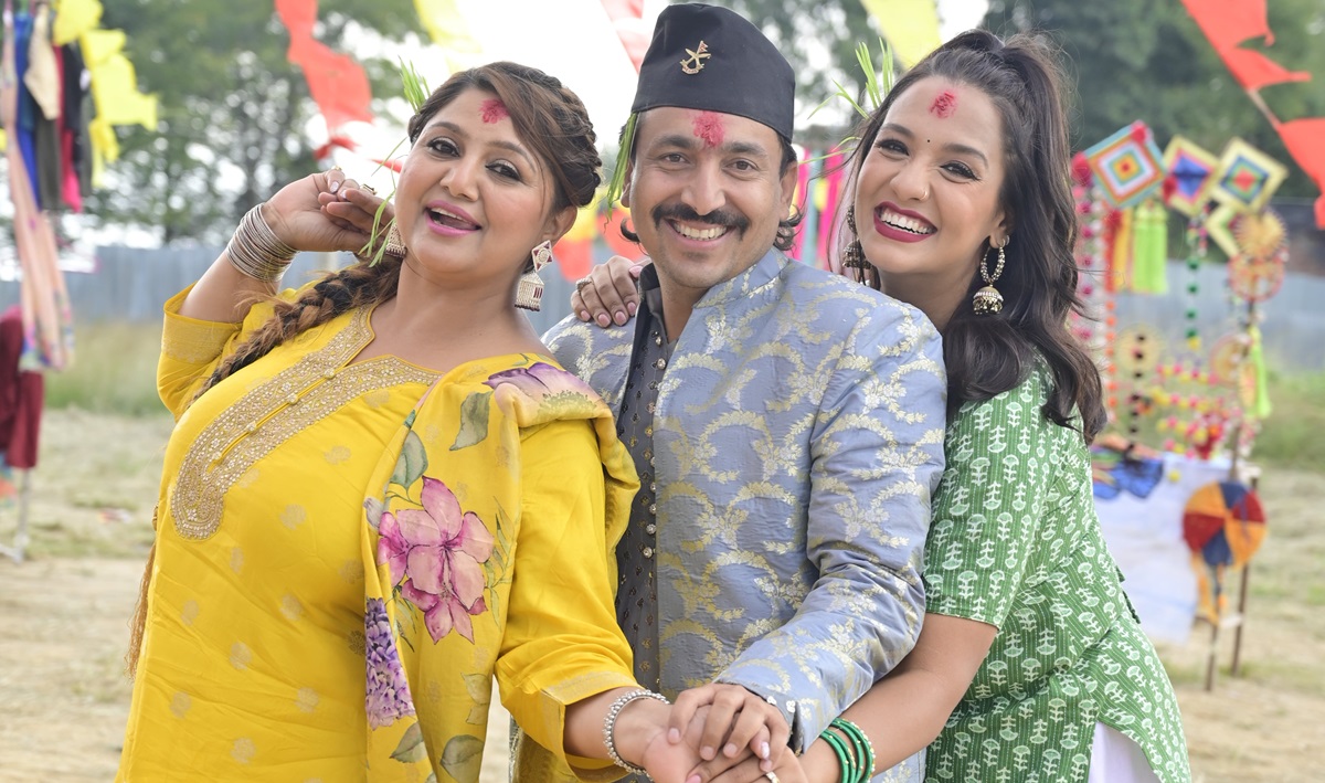 भिडिओमा अभिनेत्रीद्धय दीपाश्री निरौला र प्रियंका कार्कीका साथमा सरोज ओली फिचर्ड छन्।
