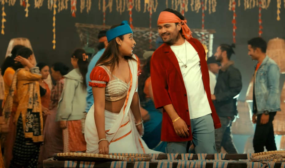 गीतमा नेपाली र थारू भाषाको मिश्रण छ।