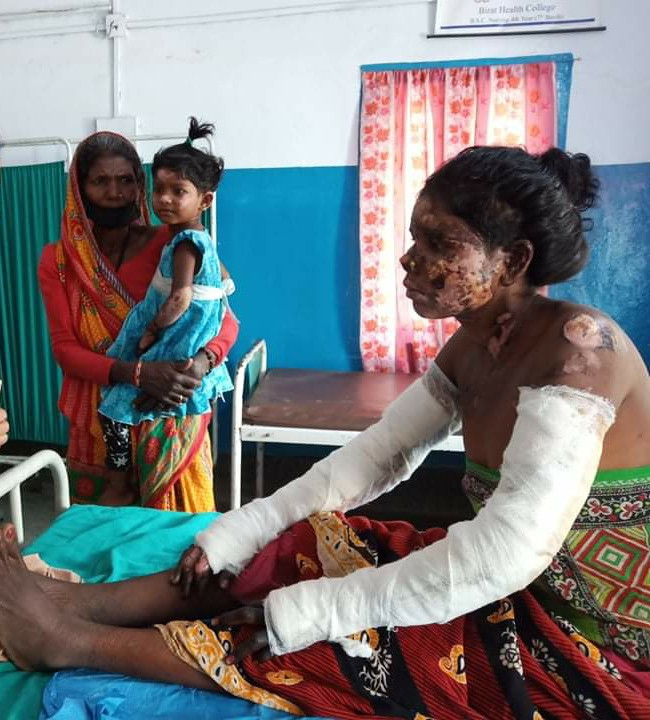 आधा रातमा उनीहरुको गुहार सुनेर छिमेकीहरुले आगो निभाएछन्। अचेत अवस्थामा रहेको तीनै आमा छोरीलाई इनरुवा अस्पतालमा लगियो। शरीरमा आगोले बढीनै पोलिसकेको हुँदा विराटनगरको कोशी अस्पताल पुर्याएपछि मात्र कोमललाई होस आयो। यो घटनामा कान्छी छोरी सामान्य घाइते भए पनि जेठी छोरी गम्भीर घाइते भइन्। कोमलको आफ्नै अनुहार र शरीर पनि नराम्रोसँग डढेको छ।