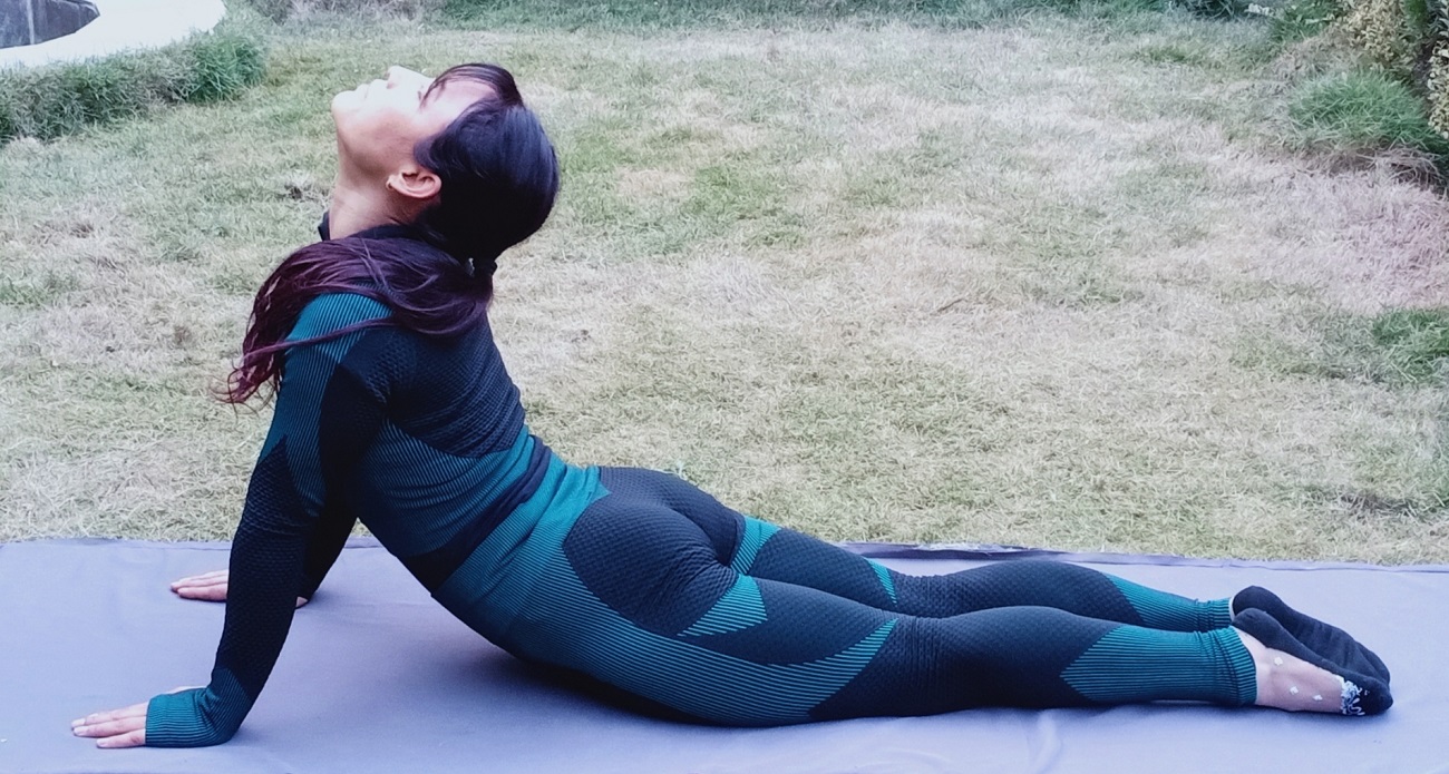 घोप्टो परेरै सुत्ने। दुवै हात काँधको दायाँबायाँ राख्ने। लामो सास तान्दै दुवै हात तन्काएर कम्मरमाथिको भाग उठाउने। टाउको पछाडि लगेर आकाश हेर्ने। दस गन्ने र सास छोड्दै फर्कने। पाँच पटक गर्ने।
