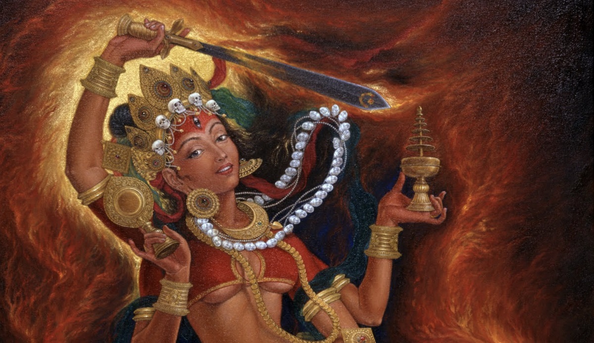 त्यस्तै गरी चण्डभैरवसँगै उभिएकी कौमारीको चित्रमा भैरवको मुखाकृति जति तेजिलो छ, कौमारीमा भने देवत्वभाव हराएको भान हुन्छ।