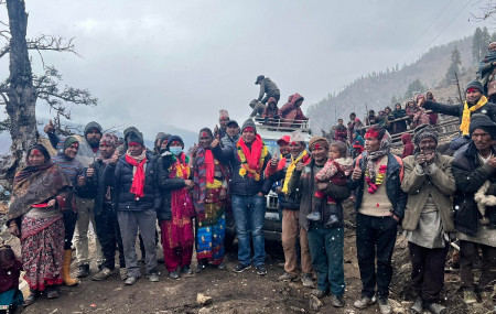दुर्गममा गाडी पुग्दा स्थानीयको खुसीयाली