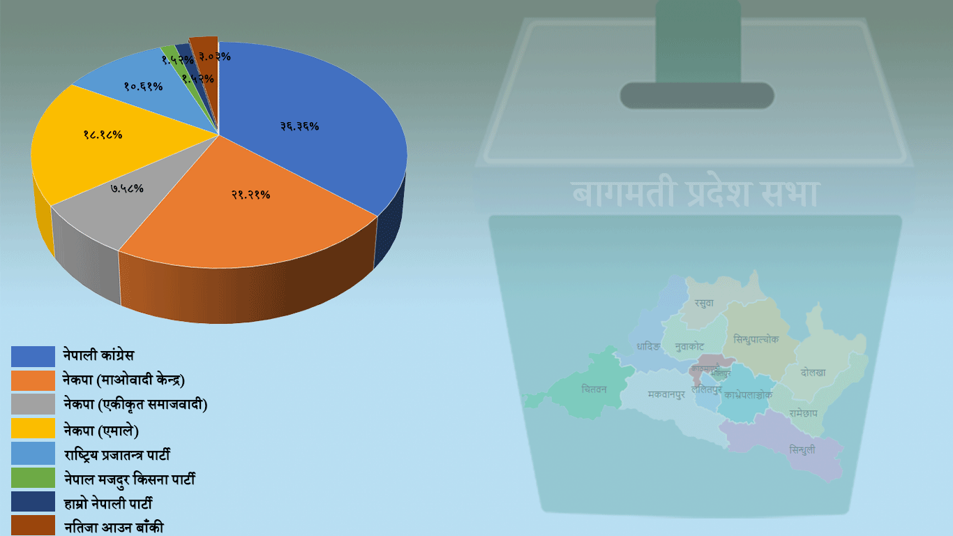 बागमती प्रदेशमा सभामा सरकार गठनका लागि सत्ता गठबन्धनलाई आरामदायी बहुमत पुग्ने भएको छ। १ सय १० सदस्यीय प्रदेश सभामा सरकार गठनका लागि ५६ सिट आवश्यक पर्छ।