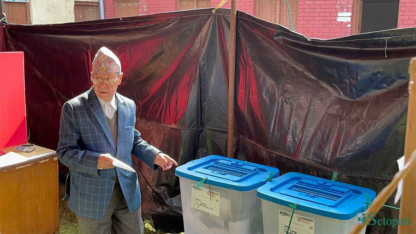 नेपाल मजदुर किसान पार्टीका अध्यक्ष नारायणमान विजुक्छेद्वारा मतदान