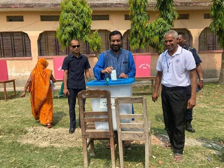 आफ्नो मताधिकारको प्रयोग गर्दै उनले धनुषाको नगराइन नगरपालिकास्थित राजेश्वर निधि मावि मतदान केन्द्रमा उनले भोट खसालेका हुन्।