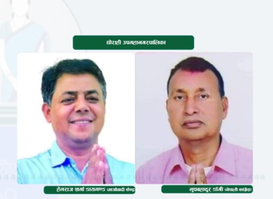 घोराहीमा नेकपा एमालेका मेयरका उम्मेदवार नरूलाल चौधरीले २५२४ र उपमेयरमा हुमा डिसीले २४५८ मत प्राप्त गरेकी छन्।