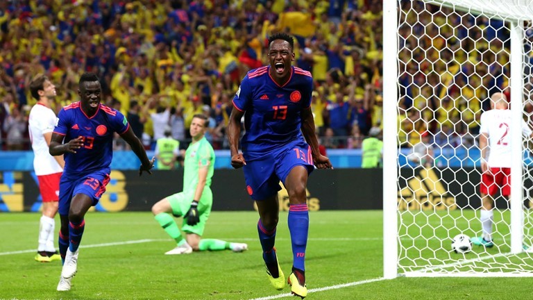 कोलम्बियाका अग्ला खेलाडी मध्येका एक मिनाले आफ्नो हाइटको सदुपयोग गर्दै कर्नरबाट प्राप्त अवसरलाई गोलमा परिवर्तन गर्दै कोलम्बियाको अग्रता कायम गरेका हुन्। २३ वर्षिय डिफेन्डर मिनाको देशका लागि तेश्रो अन्तराष्ट्रिय गोल हो।