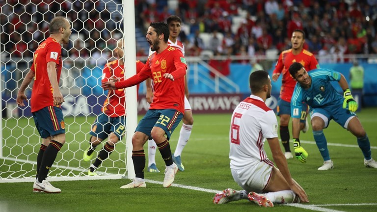 एक गोलले अग्रता लिएको भए पनि मोरोक्को अग्रतालाई स्पेनी टिमले खेलको १९ औं मिनेटमा बराबरी गर्यो।