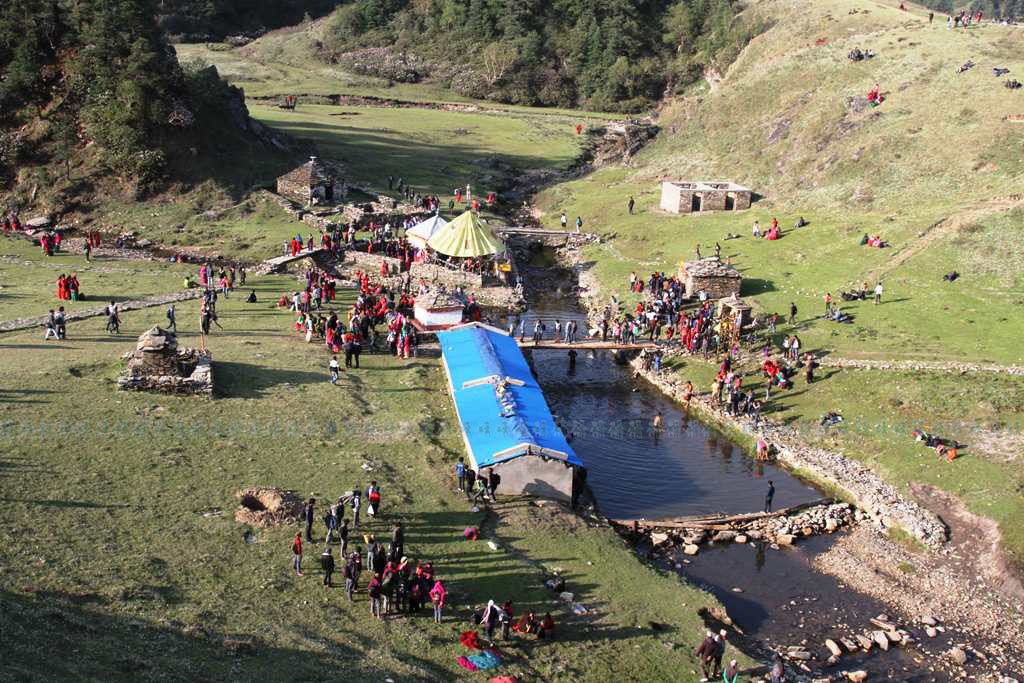 हामीले सेनाको स्वास्थ्य शिविर नजिक झोला बिसायौं । मैले भिडको अनुहार पढें, कलिलै उमेरमा विवाह हुने भएकाले तिलहरी लगाएका स्याना उमेरका महिला धेरै देखें । डोटी, बझाङ, अछाम र बाजुराका तिर्थालु बढी देखिन्थे ।