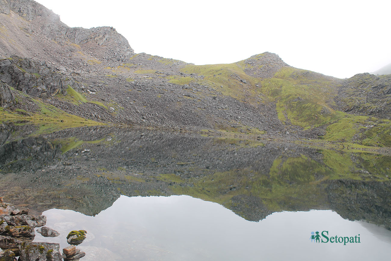 चारै तिर अग्ला अग्ला चट्टान नै चट्टानको बीचमा ४६०६ मिटर उचाइमा रहेको पाँचपोखरी मुस्कुराइरहेको थियो। मौसमले हाम्रो स्वागतमा घुम्टो उघारेर घाम लागेको थियो।