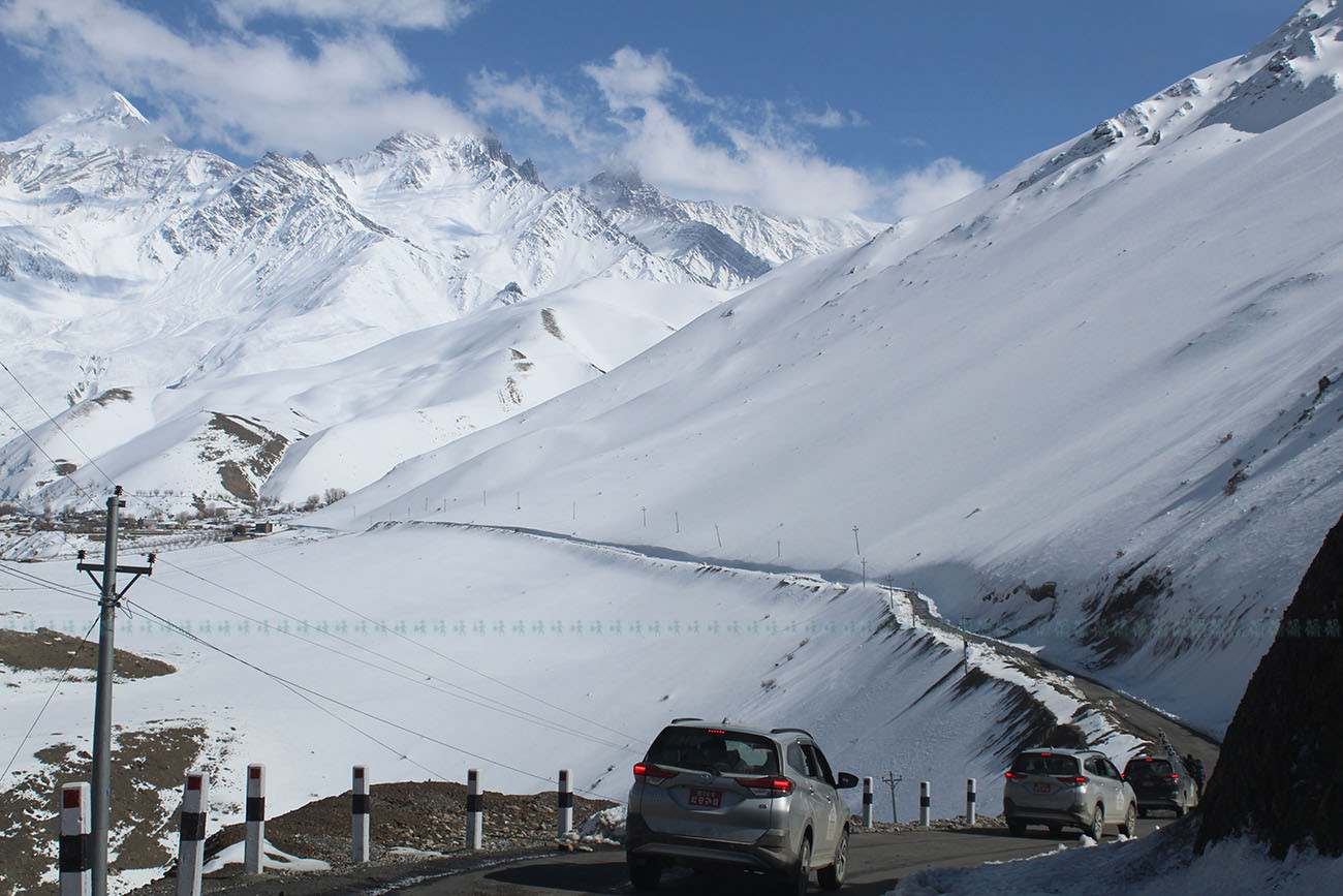गाडी जति गुड्छ हिमाल त्यही नजिक। बाटो कच्ची भए पनि आँखाले पहिलो पटक त्यत्ति नजिकबाट हिमाल देख्दा बाटोको अवस्था बिर्सियौं।