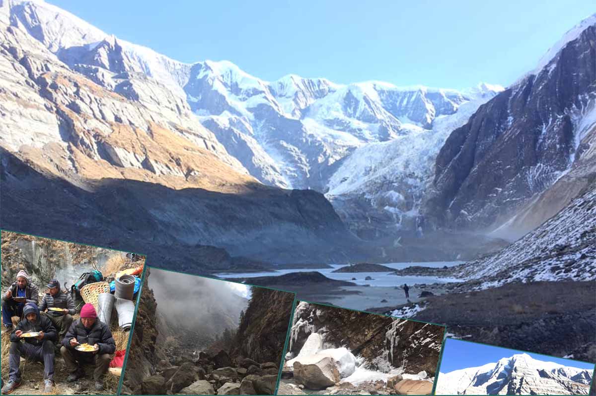 बेलुकीको खाना खाएपछि मान्छे धेरै नहिँड्ने स्थान भएकाले जनावरको आक्रमणबाट बच्न रातभर आगो बालेर टेन्टभित्र गुडुल्किएर सुत्यौं। मोबाइलको टावर पनि नटिप्ने ठाउँ भएकाले हामीले विपद्् अवस्थाका लागि स्याटेलाइट फोन पनि बोकेका थियौं।