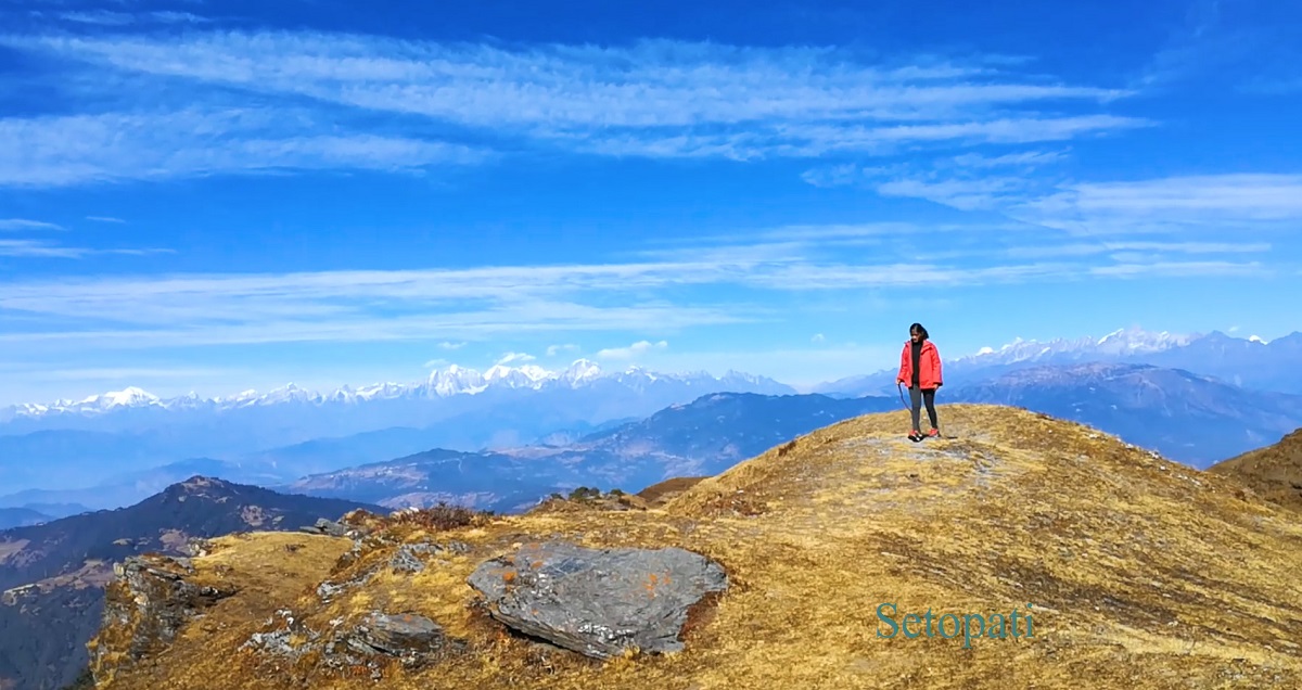 सेताम्मे गौरीशंकर, गणेश, लाङटाङ, धौलागिरि, अन्नपूर्ण, मनाश्लु हिमाल आँखा अगाडि नाचिरहेका थिए। मनमोहक!