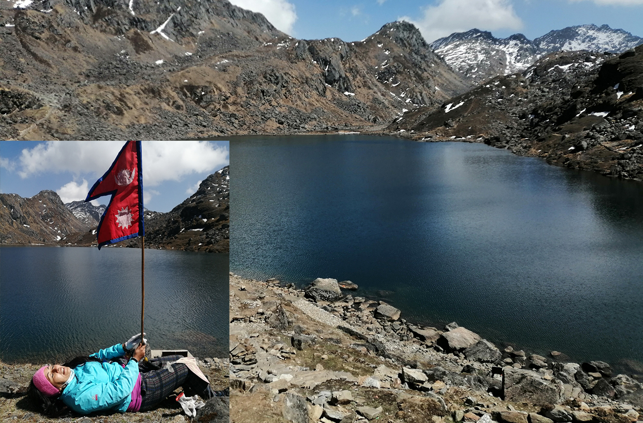 वरपर पहाड रातको हिउँले सेताम्मे भएको थियो। चिसो मौसम भए पनि थोरै उकालो लाग्दा ज्यान तातिहाल्यो। झोलामा बोकेको खुर्पानीको स्वाद लिँदै, सेता, गुलाबी रंगका लालीगुराँससँग गफ गर्दै लोक्ता फूलको सुगन्ध सुँघ्दै मनसँग गफ गर्दै हिँड्न थालें।