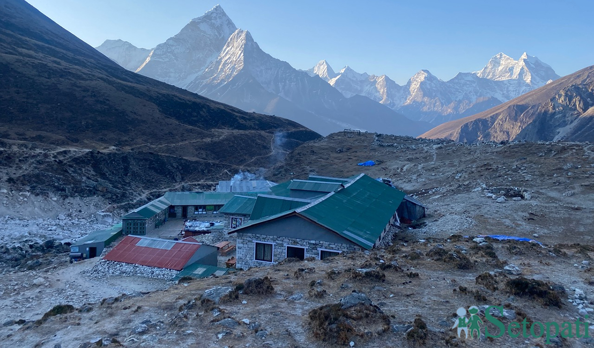 यो सानो लोबुचे गाउँको उचाइ ४९४० मिटरमा अवस्थित रहेको छ। सगरमाथा आधार शिविरका पदयात्रीहरूको अन्तिम रातको स्टप ओभरको रूपमा पनि यो बस्तीलाई लिइन्छ। यसपछिको अन्तिम बस्ती भनेको गोरकशेप हो। गोरकशेपलाई आधार मनाएर पदयात्रीहरू सगरमाथा बेस क्याम्प र कालापत्थर उक्लने गर्छन्।