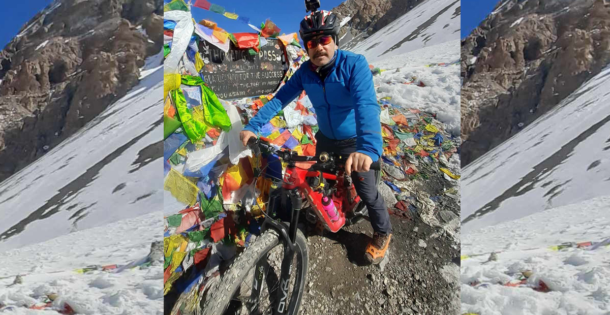 साइकल उचालियो, साइकलसहित चढेको प्रमाण तथा सम्झनाको लागि। त्यो महत्त्वपूर्ण क्षण थियो मेरो साइकलयात्रा जीवनको, सबभन्दा उचाइमा कठिनाइले पुगेको गन्तव्य!
