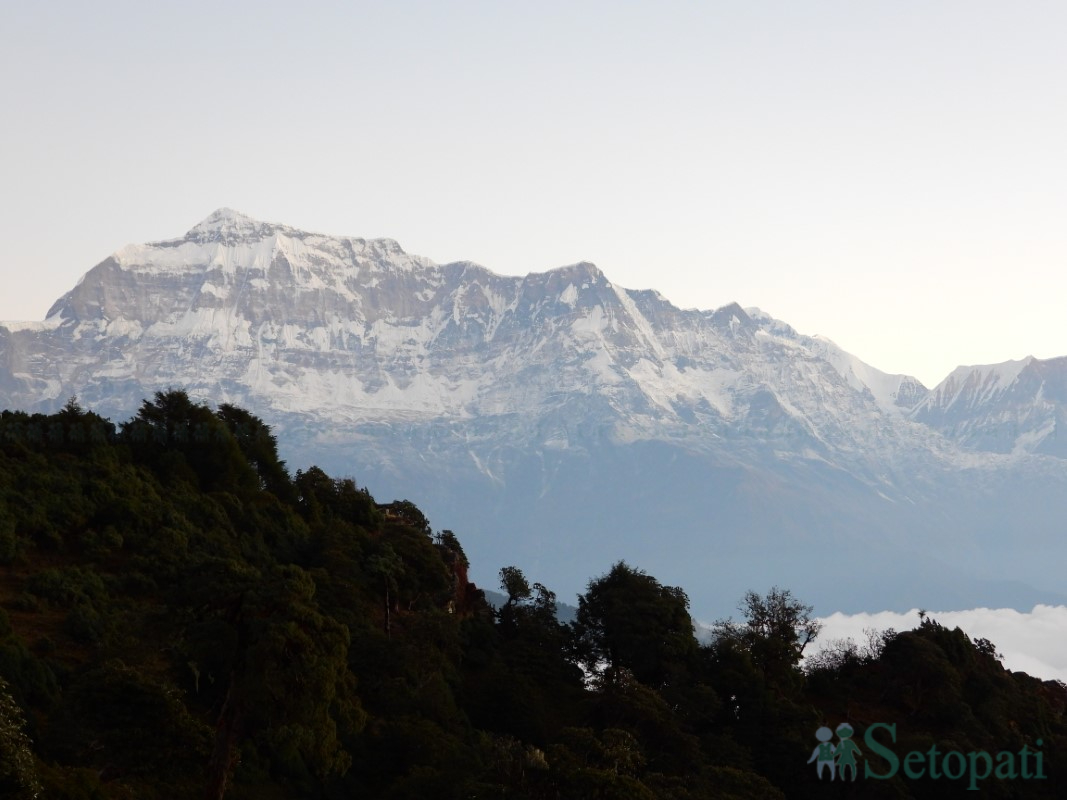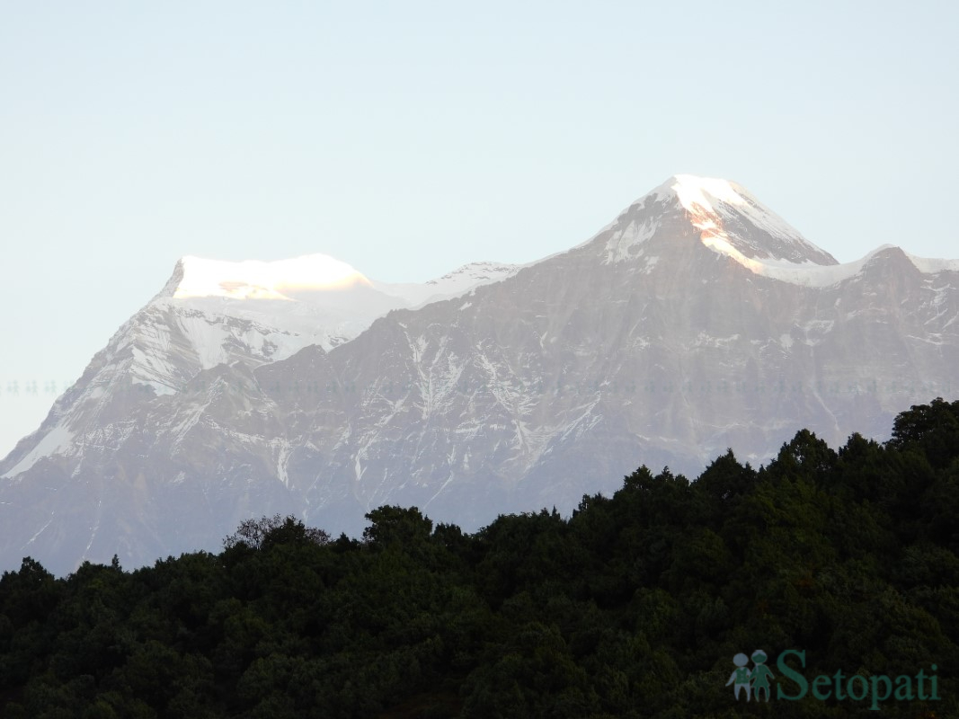 यहाँबाट ७ हजार २४६ मिटर अग्लो माउण्ट पुथादेखि माछापुच्छ्र्रेसम्मका दर्जनबढी हिमालहरू नजिकै देखिने रहेछन्। अन्नपूर्ण पहिलो र तेस्रो, धवलागिरी पहिलोदेखि छैठौंसम्म, चुरेन, निलगिरी, गुर्जा हिमालको दृष्यले मनै लोभ्याउने रहेछ। सूर्योदयसँगै हिमश्रृङ्खलामा बादलको लुकामारी सुरू हुन्छ। दर्जन हिमालहरू पालैपालो देखिन्छन्, पालैपालो लुक्छन्।