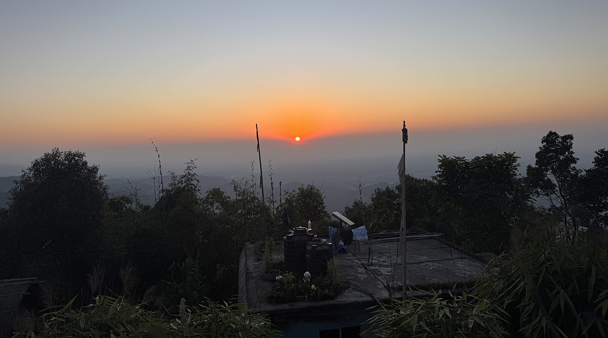 विस्तारै पहाडहरू र तराईका समतल मैदानहरूले नयाँ ऊर्जा पाए। पूर्वतिर मेची खोला अविरल रूपमा बगिरहेको थियो। मेचीपारि मिरिक डाँडा, खर्साङ र पानी ट्यांकी देखिन्थ्यो अनि मेचीवारि श्रीअन्तु डाँडा, झण्डी डाँडा र काँकडभिट्टाले अनुहार खोलेका थिए। त्यहाँको शुद्ध हावा, हरियाली र मनोरम दृश्यले मेरो मन शान्त र आल्हादित भयो। मौसम पनि कति सुहाना ! न जाडो न गर्मी।