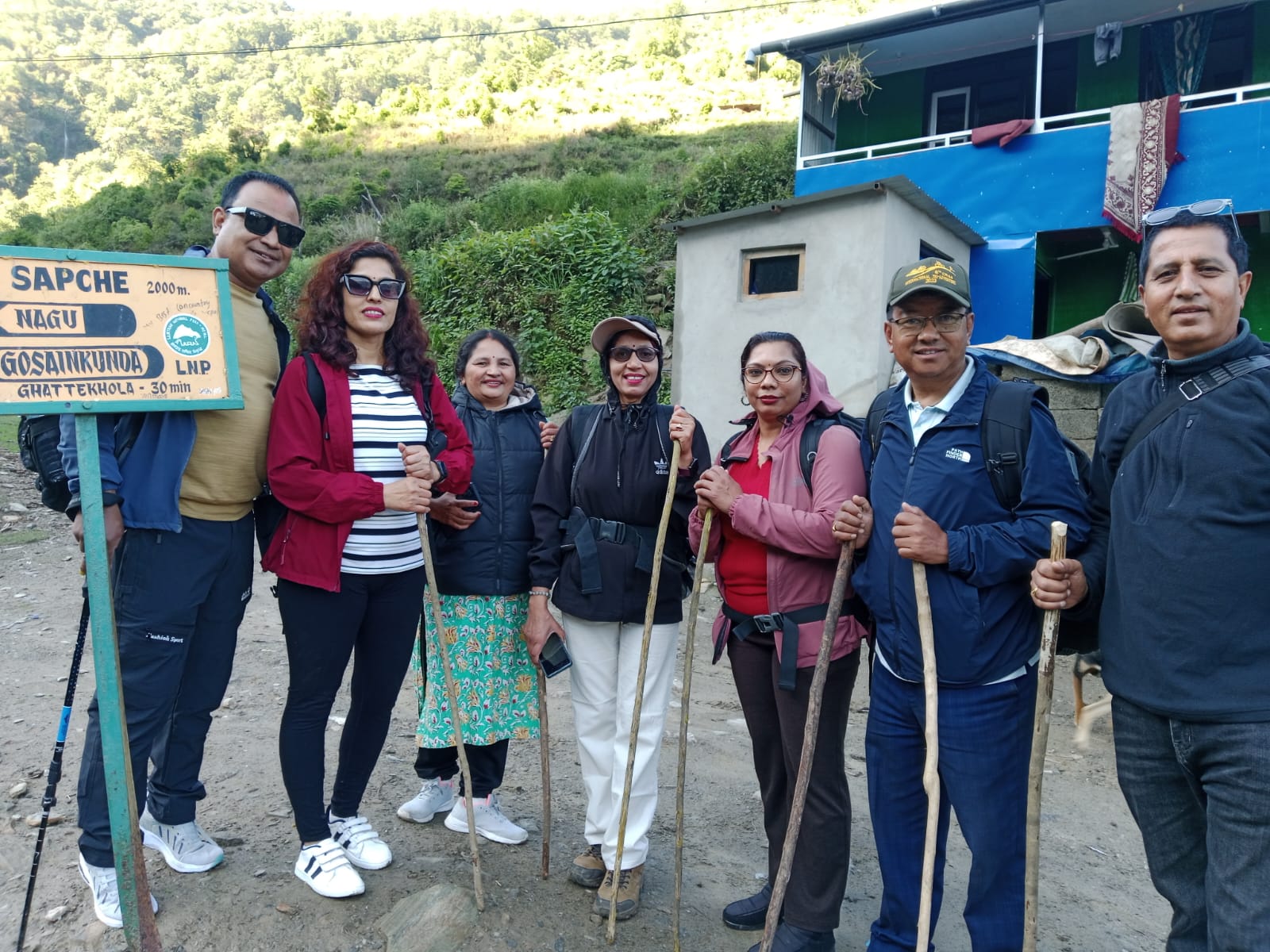 जेठ ११ गते आठ जनाको टोली गोसाइँकुण्ड पदयात्राका लागि रसुवाको धुन्चेतर्फ लाग्यौं।