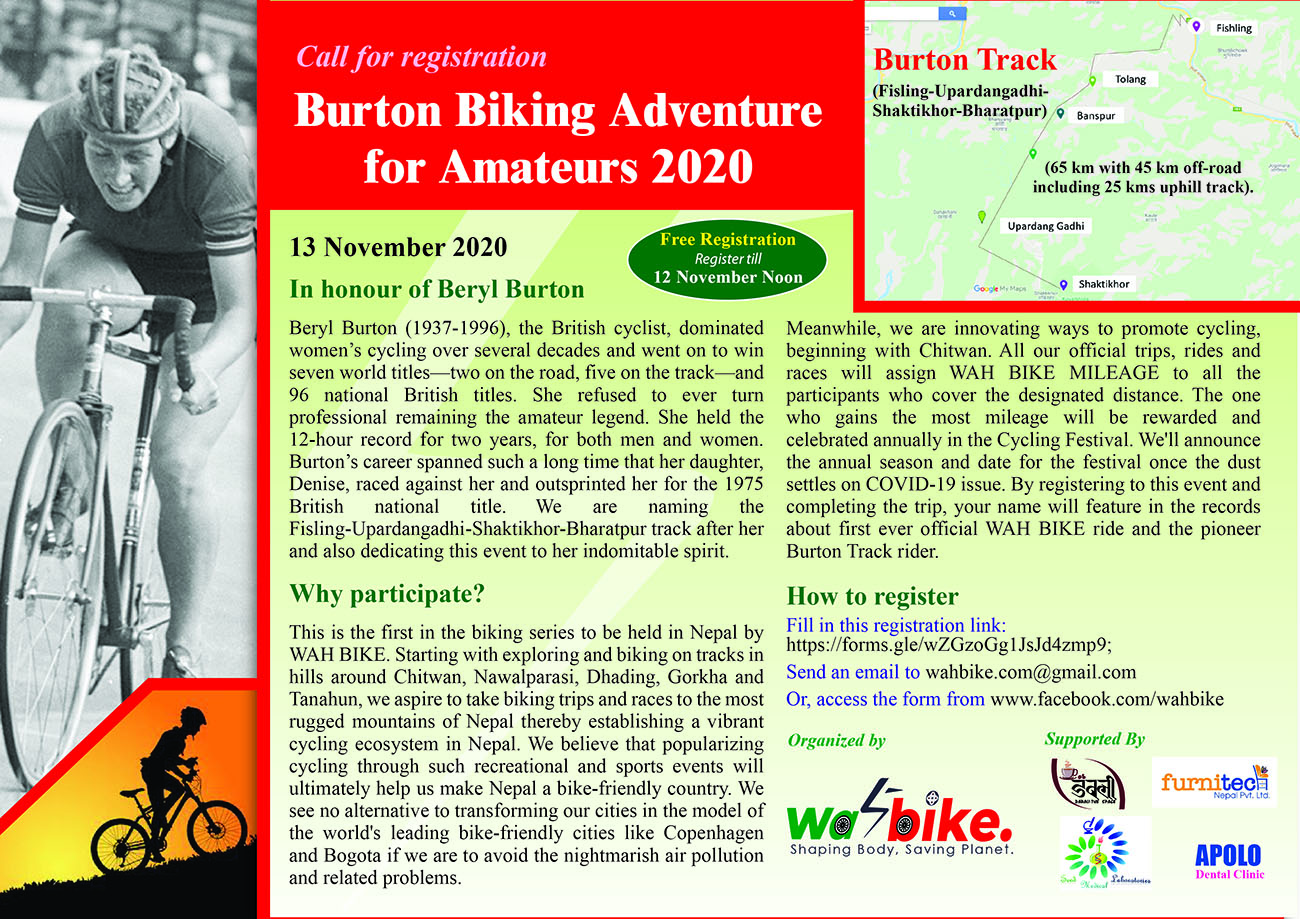 आयोजक वाह बाइकले उक्त साइकलिङ रूटको नाम बेलायती साइक्लिस्ट बेरिल बर्टोनको सम्मानमा 'बर्टोन ट्रयाक' राखेको हो।