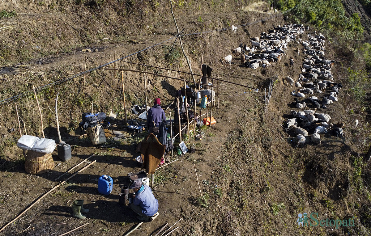 लमजुङको उत्तरी भेग गौडामा पुग्दा भेटिएको भेडीगोठ र यहाँबाट देखिएको केही दृश्यहरू: