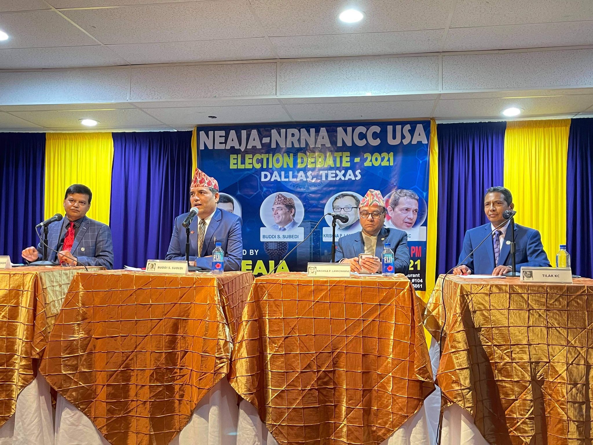 नेजाले आयोजना गरेको वहसमा सहभागी चारै जना अध्यक्षका उम्मेदवारले आ–आफ्नो चुनावी एजेण्डा प्रस्तुत गर्दै आफ्नो जीत सुनिश्चित रहेको दावी गरेका छन्। डा. अर्जुन बञ्जाडेको ‘उचाई थप्ने’, बुद्धि सुवेदीको ‘मातृभूमि जाँदा भिसा लिनु नपर्ने’, कृष्ण लामिछानको ‘मर्दा र पर्दाको एनआरएन बनाउने’ र तिलक केसीले ‘सिण्डीकेट तोडौँ’ भन्ने मुख्य एजेण्डा राखेका थिए।