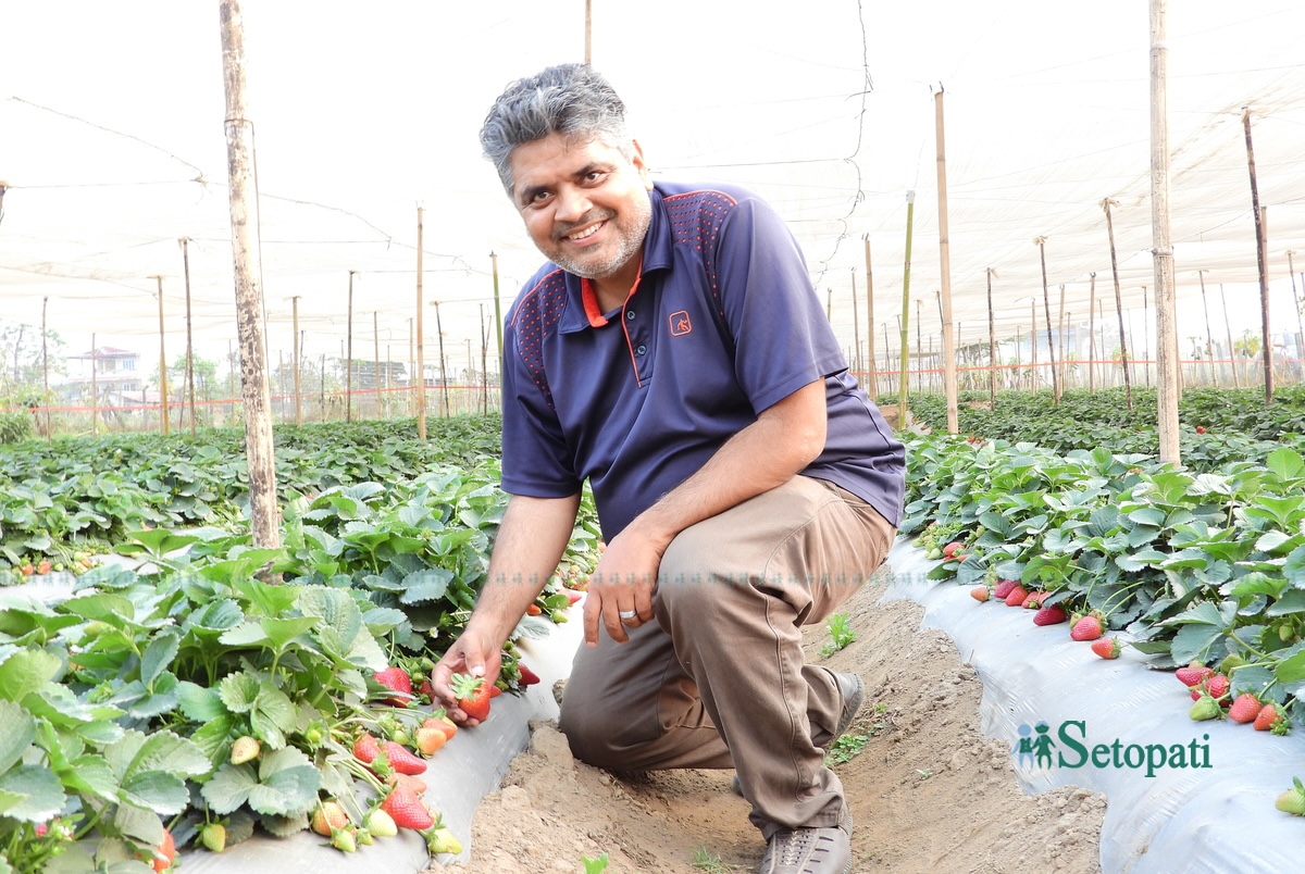 'चितवनको कृषि ज्ञान केन्द्रका प्रमुख राजन ढकालसँग मेरो राम्रो चिनजान थियो। चितवनमै पढेकाले अरू धेरै साथीहरू पनि थिए। मैले उनीहरूसँग यहाँ कृषिको सम्भावनाबारे राम्ररी बुझेँ। अनि जग्गा भाडामा लिएर स्ट्रबेरी खेती सुरू गर्ने निधो भयो,' उनले भने।